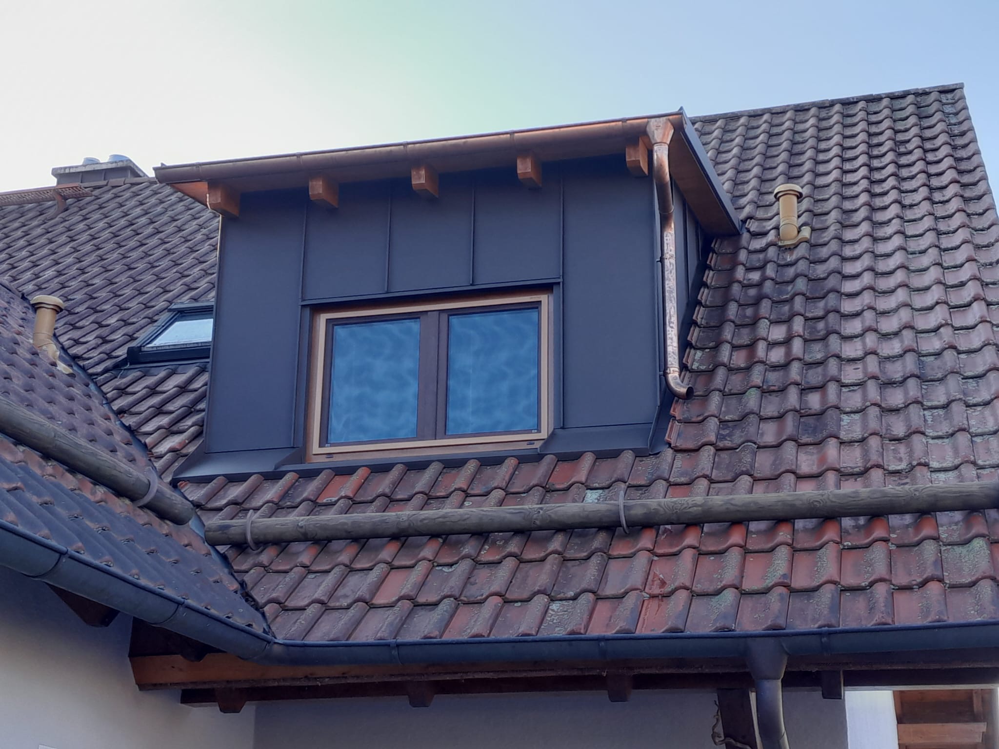 Wir bieten von der einfachen Dachrinne bis hin zu komplexen Kapellendachsanierungen ein komplettes Programm an.
